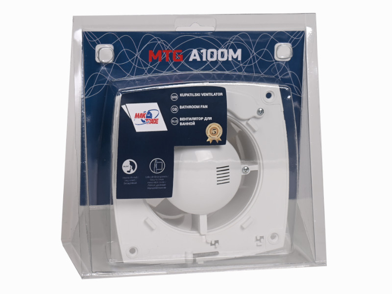 Kopalniški ventilatorji se uporabljajo za prezračevanje stanovanjskih in poslovnih prostorov. Preprečujejo vlago in neprijetne vonjave. Enostavno se namestijo na stensko odprtino ali na strop s štirimi vijaki. Na okno jih lahko pritrdite s plastičnim obročem (prirobnico). Tihi kopalniški ventilator ima brezšumni elektromotor. Toplotna zaščita preprečuje pregrevanje motorja. Ventilatorji MTG so lahki, tihi in visokokakovostni. Tihi kopalniški ventilator ima brezšumni električni motor. Kopalniški ventilator z loputo zagotavlja, da zrak teče samo v eno smer. Preprečuje vstop hladnega zraka in žuželk. Kopalniški ventilator fi 100 je nameščen na sesalni cevi s premerom 100 mm.