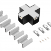 X-priključek omogoča povezavo svetilk pod pravim kotom. V kompletu so štirje konektorji na zaponke in štirje pin konektorji, ki zagotavljajo stabilno in močno povezavo. Idealna izbira za tiste, ki iščejo učinkovite in estetske rešitve osvetlitve.